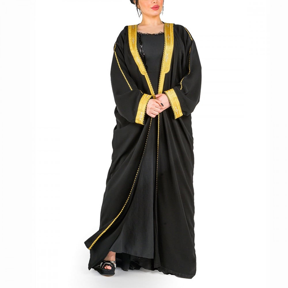 قطعة مميزة بتطريز خاص بالزري الذهبي عباية كلاسيك مع تطريز القبة و الكتف والاكمام بالزري الذهبيموديل العباية كلاسيك ( اكمام )قفلة العباية لفقماش كريبلون العباية اسودعباية كلاسيك لجميع المناسباتصنع بفخر بالمملكة العربية السعودية - الرياض