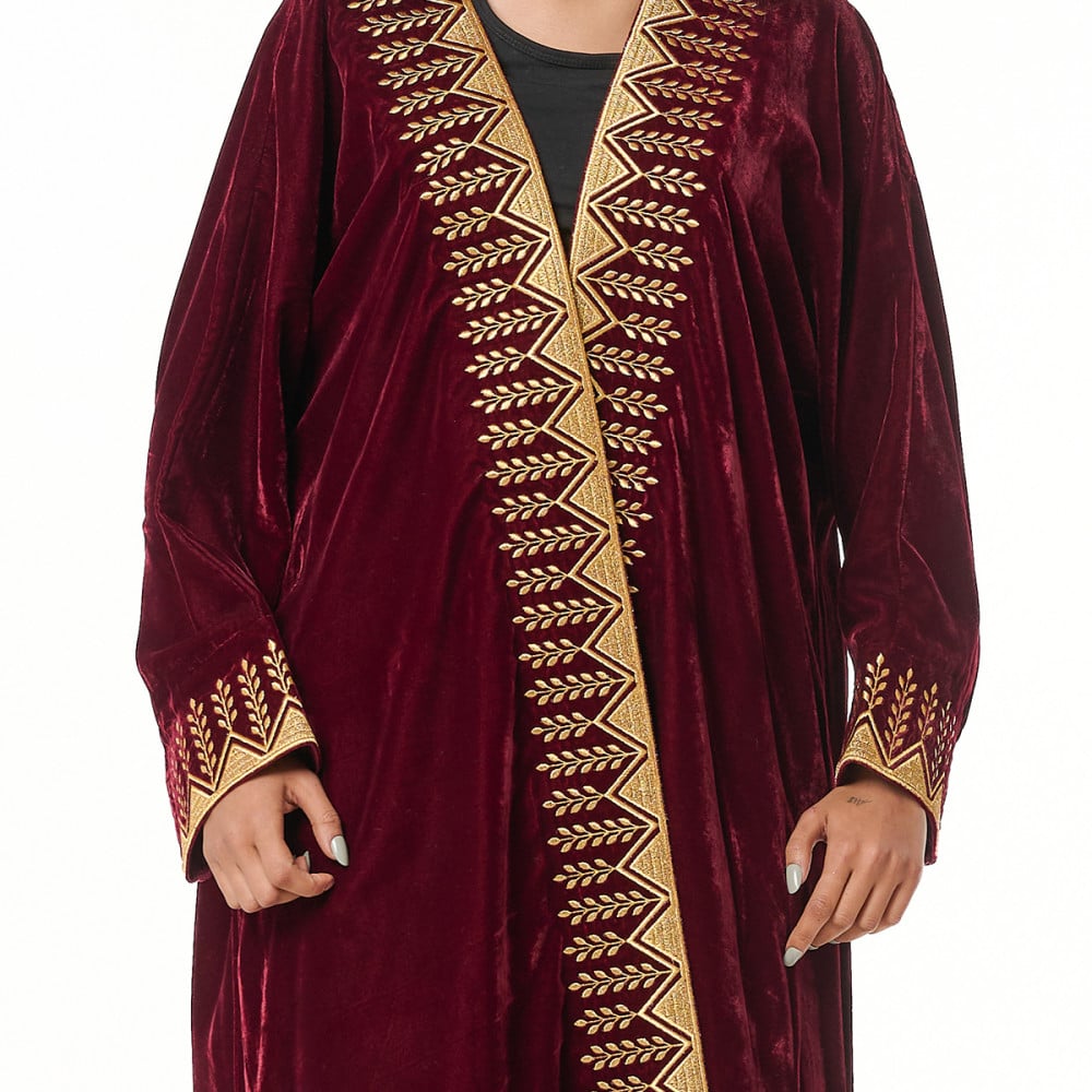 عباية حجازي مع تطريز على كامل القبة والاكمام بالزري الذهبيموديل العباية كلاسيك ( اكمام )قفلة العباية لفقماش مخمللون العباية عنابيعباية كلاسيك لجميع المناسباتصنع بفخر بالمملكة العربية السعودية - الرياض
