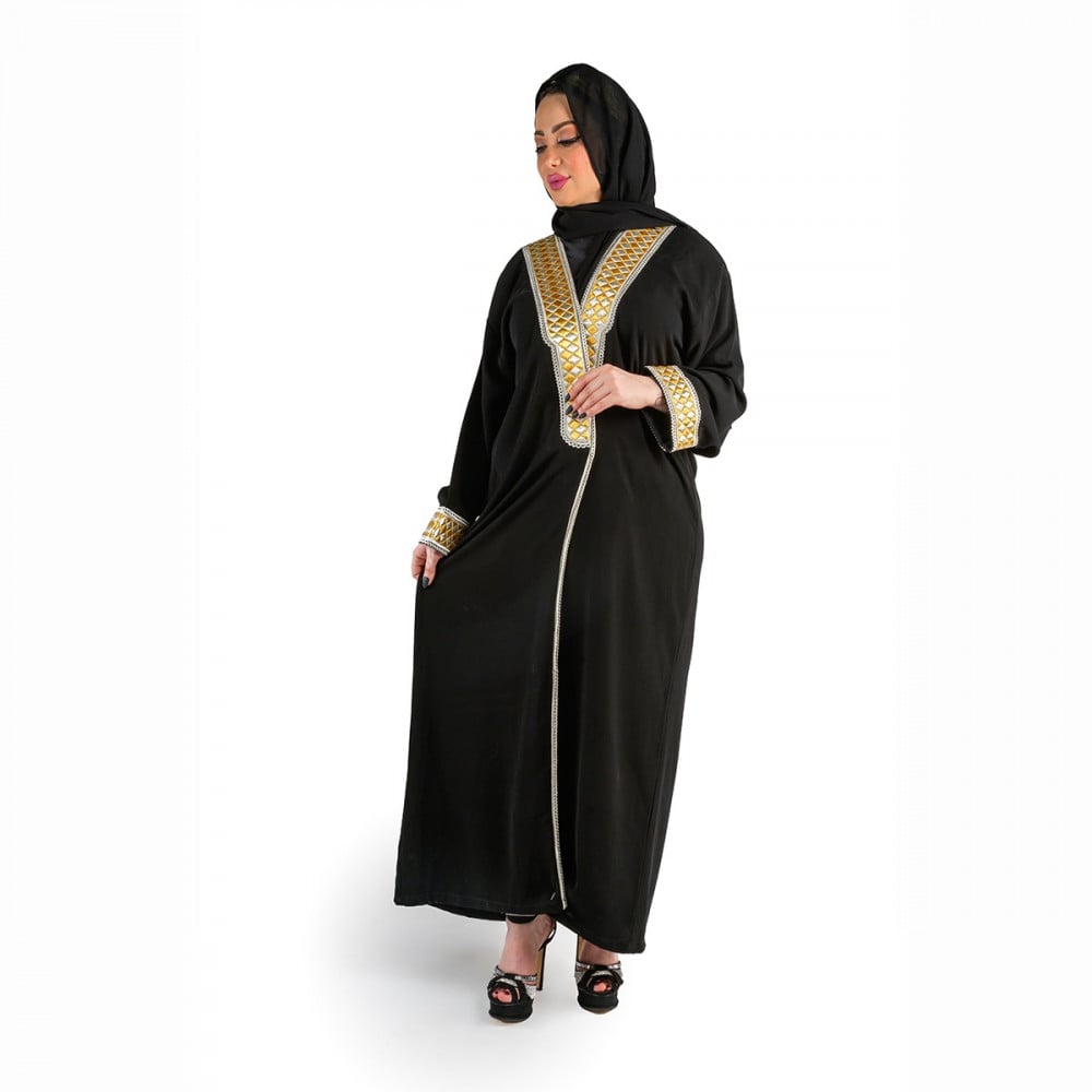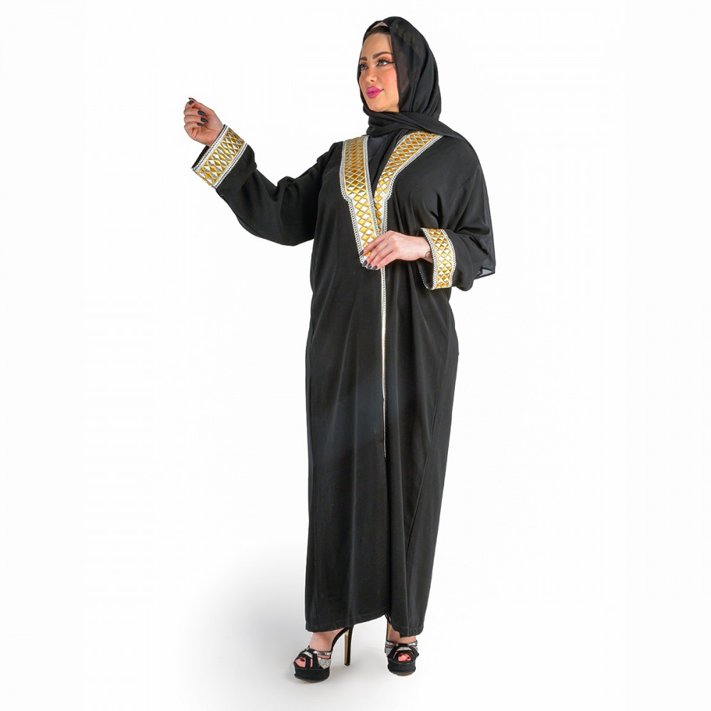Abaya Bisht Al-Asala with embroidery on the neckline and sleeves