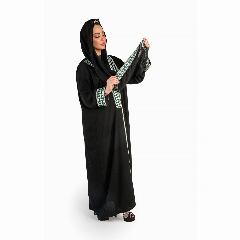 Abaya Bisht Al-Asala with embroidery on the neckline and sleeves