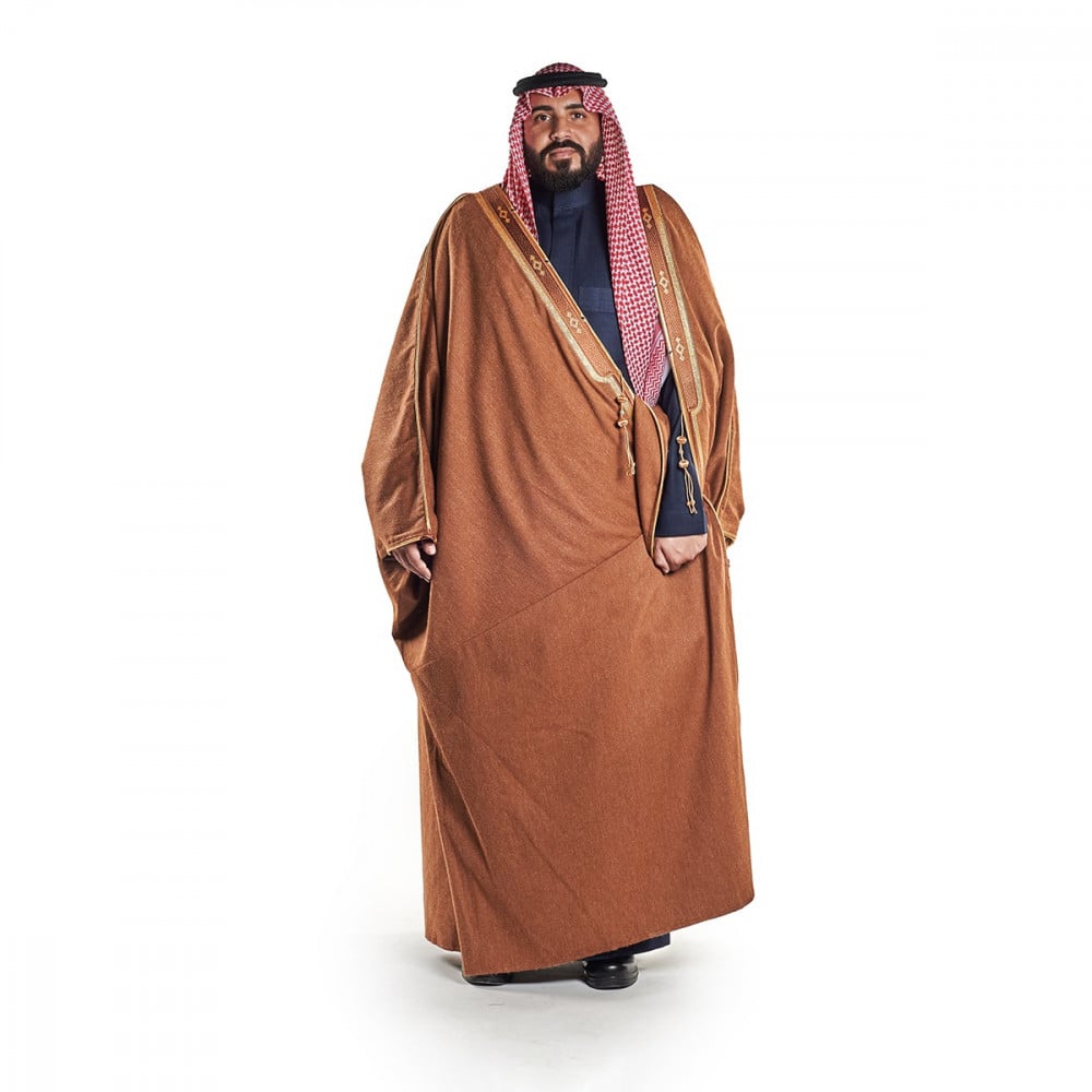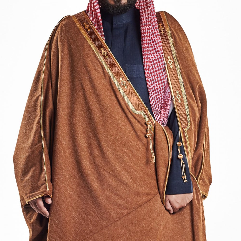 Bisht network Color: beige Zari color: Beige and Zari silk muffin Proudly made in Saudi Arabia-Riyadh Production of Riyadh Technical Factory for shorts, furs and ready-to-wear