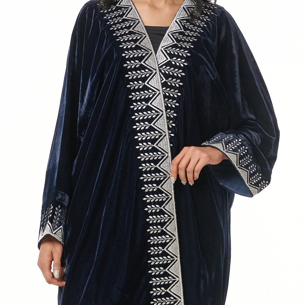 Hijazi abaya with embroidery on the entire dome and sleeves with silver buttons