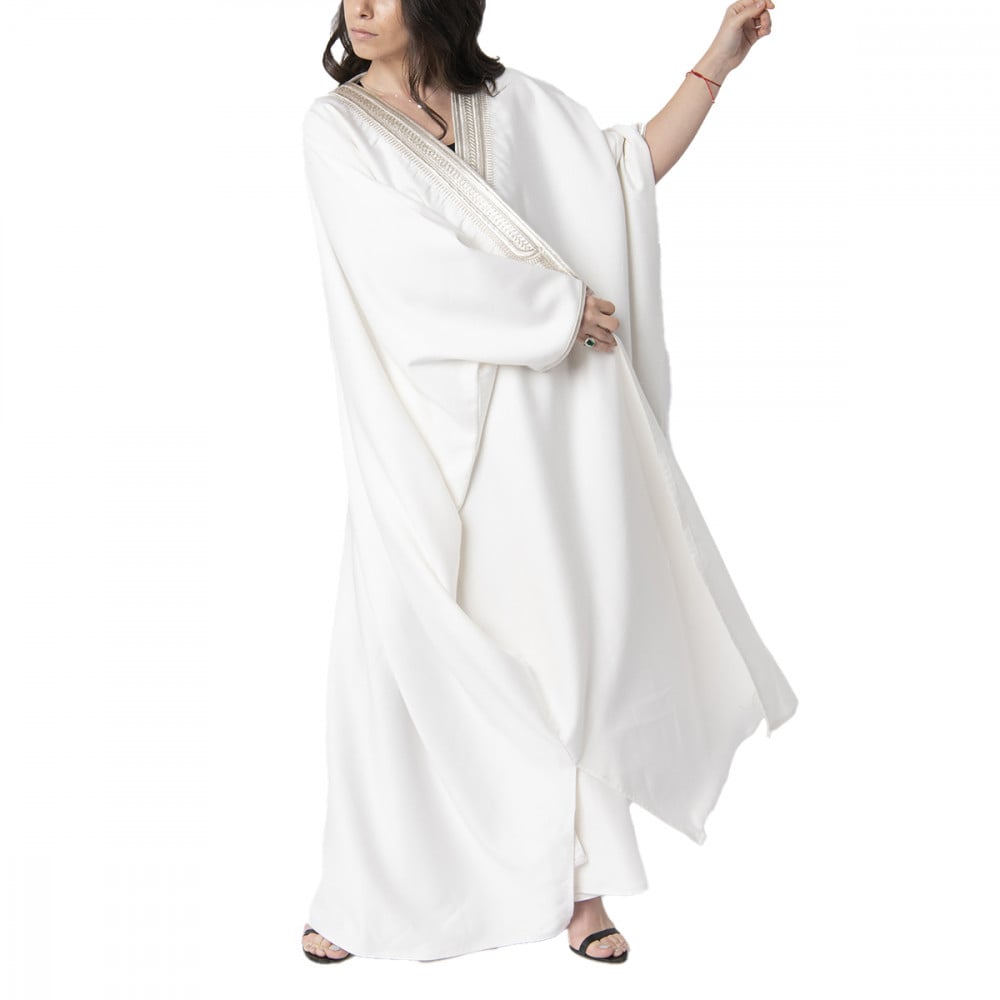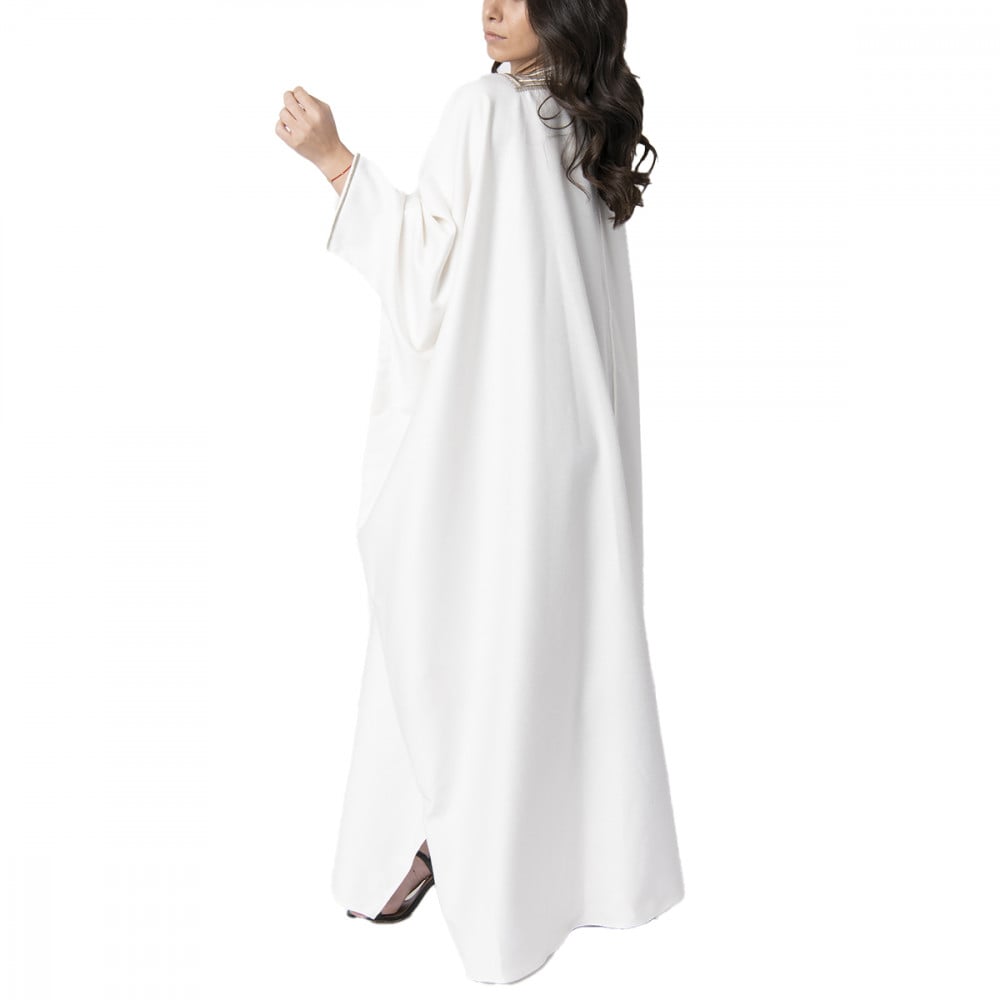 Royal bisht abaya with white embroidery on the neck and sleeves